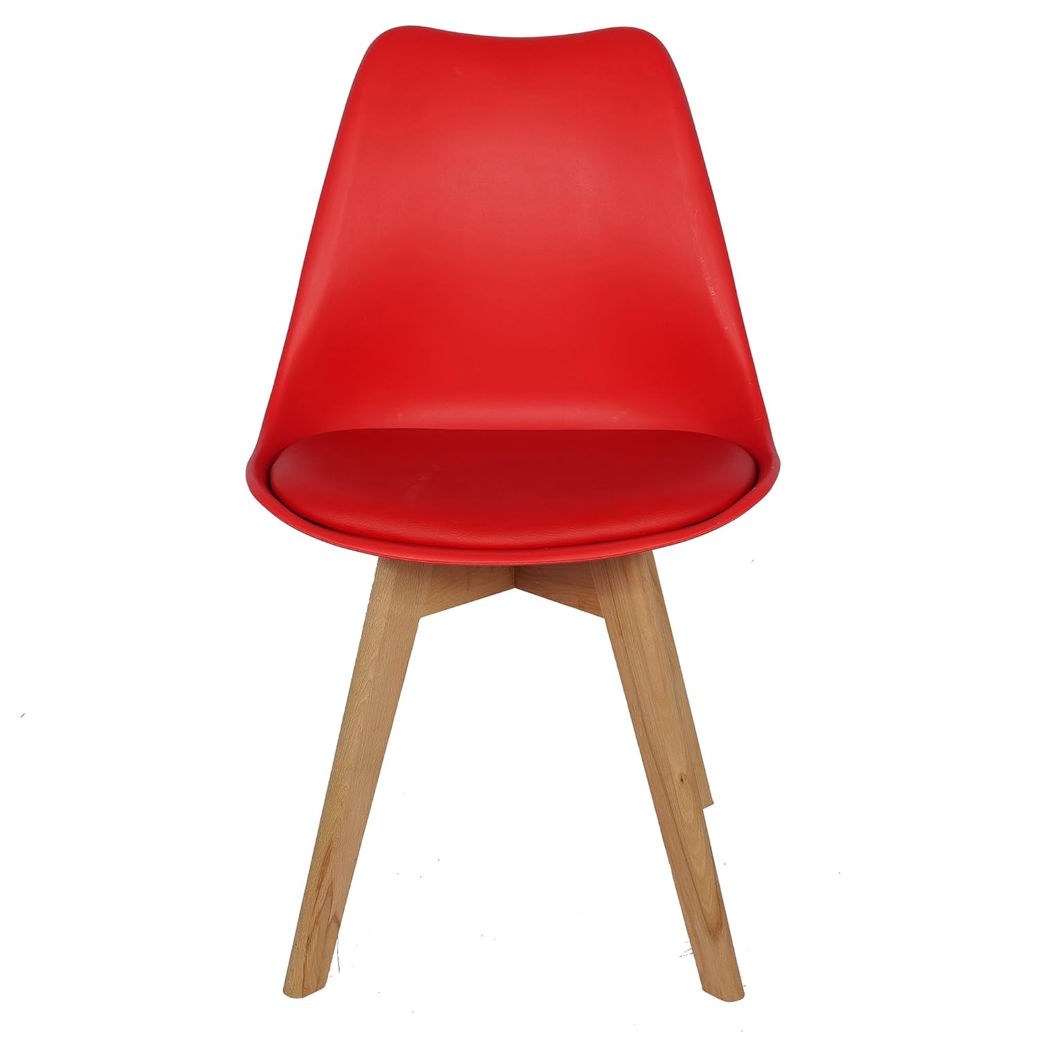 Creative Yellow Plastic Dining Chair with Wooden Legs Ergonomic Mid-Century Accent Chair with Padded Seat for Kitchen, Office, and Living Room | (Yellow) (Pack of 1)