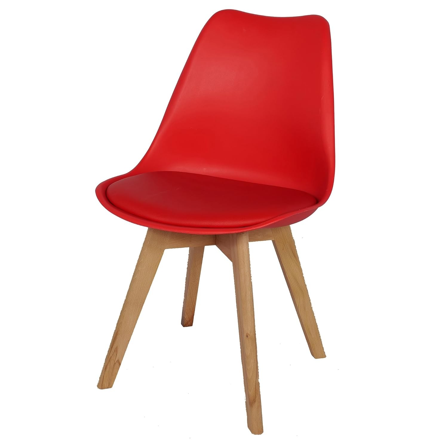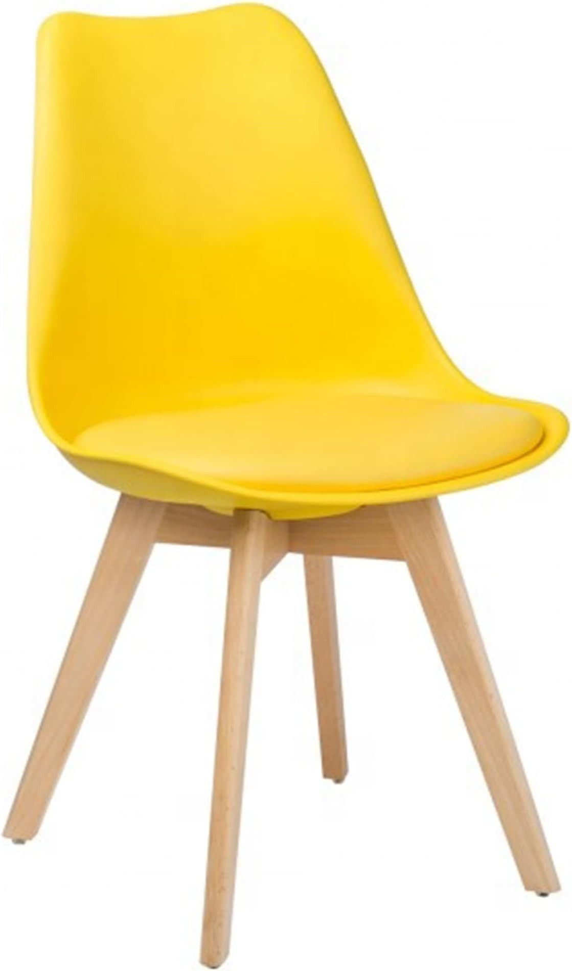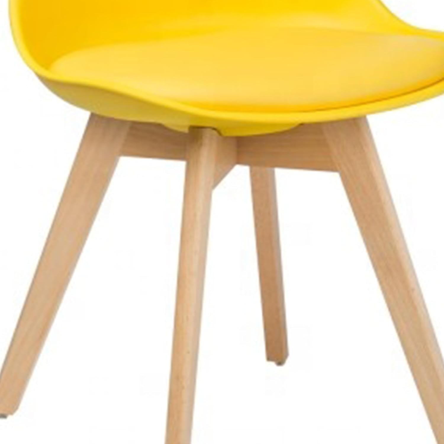 Creative Yellow Plastic Dining Chair with Wooden Legs Ergonomic Mid-Century Accent Chair with Padded Seat for Kitchen, Office, and Living Room | (Yellow) (Pack of 1)