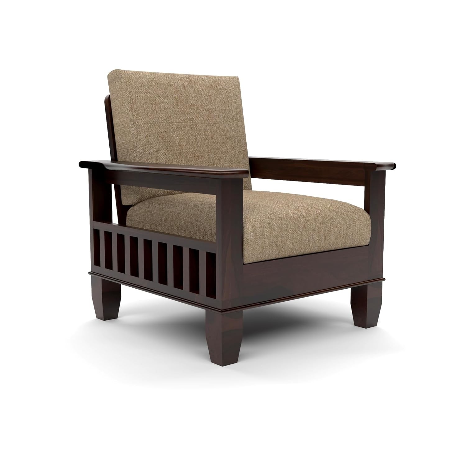 Upgrade your space with this Sheesham Wood Single Seater Sofa – a perfect blend of style, strength, and comfort. Crafted from premium quality Sheesham wood, this one-seater sofa features a Cairo Walnut finish that adds a touch of elegance to your living room, bedroom, or office.